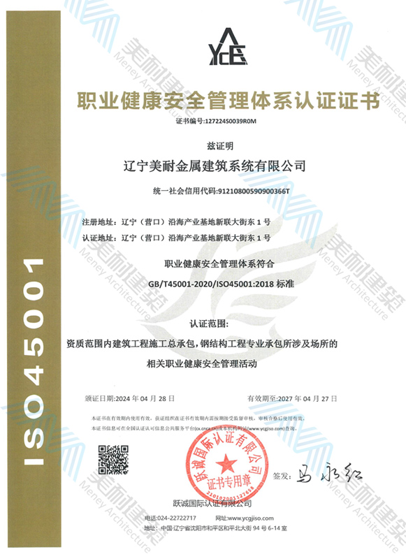 遼寧美耐金屬建筑系統(tǒng)有限公司位于遼寧(營(yíng)口)沿海產(chǎn)業(yè)基地,專注于預(yù)制金屬建筑系統(tǒng)領(lǐng)域,是一家集工業(yè)建筑設(shè)計(jì)、制作、施工及相關(guān)的技術(shù)咨詢與服務(wù)為一體的綜合性服務(wù)企業(yè)。作為國家鋼結(jié)構(gòu)協(xié)會(huì)會(huì)員、中國建筑金屬結(jié)構(gòu)協(xié)會(huì)會(huì)員單位與國家高新技術(shù)企業(yè),美耐建筑集建筑工程施工總承包、鋼結(jié)構(gòu)工程專業(yè)承包等多種資質(zhì)于一身,并擁有22項(xiàng)鋼結(jié)構(gòu)建筑領(lǐng)域?qū)@?項(xiàng)軟件著作權(quán)。